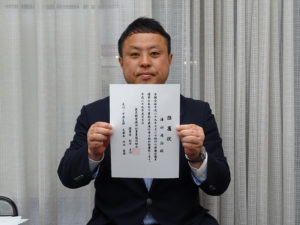 立川南口いろは通り商店街振興組合 代表理事 長井琢英様より推薦状をいただきました。